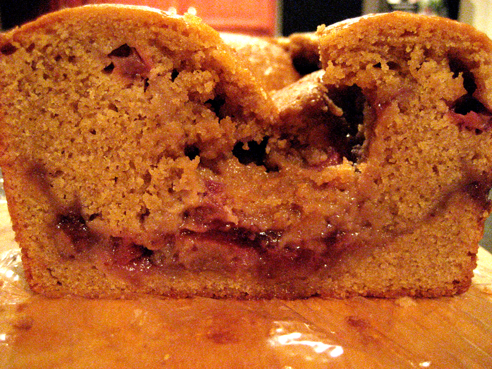 The second time around I used less jelly and didn’t use all the batter, instead I set some aside to make a mini loaf and the problem was solved! New problem: a loaf of sunken, under-baked, half-eaten PB&J bread sitting on my counter next to a fresh and successful loaf of PB&J bread. Danger Red! Danger! Bake and release! To the race track with you, delicious slices of childhood…