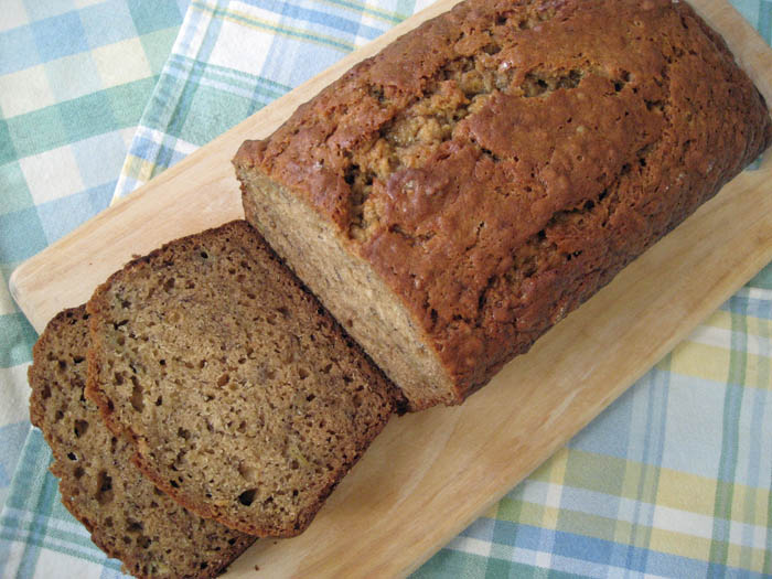 Transfer batter to the pan and bake until the loaf is golden brown and a toothpick inserted comes out with just a few moist crumbs: 1 hour to 1 hour 15 minutes. If you’re afraid your bread is getting to brown on the top, tent it with a piece of aluminum foil.