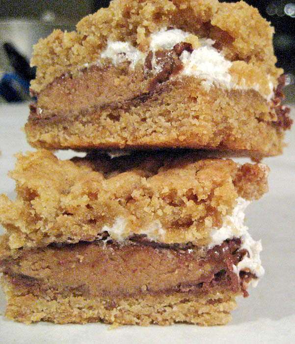 But back to these hunks of thick, glorious, chewy, fluffy, peanut butter, marshmallow and graham goodness. What was I saying about them? Oh yeah: make them. Make them now and hide the peanut butter when you’re done.