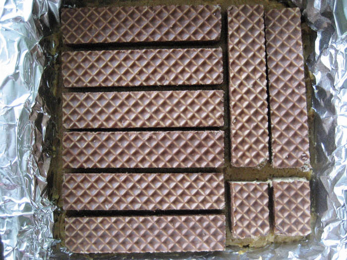 These harlots are as rich and sinful as they look. The added bonus is the bit of crunch you get when you bite through the brownies, thanks to the crispy inside of the Nutty Bar. I will admit though – the longer these sit, the less crisp each bite gets since the wafers inside the bars begin to absorb the moisture of the brownies. Oddly enough… nobody seemed to mind.