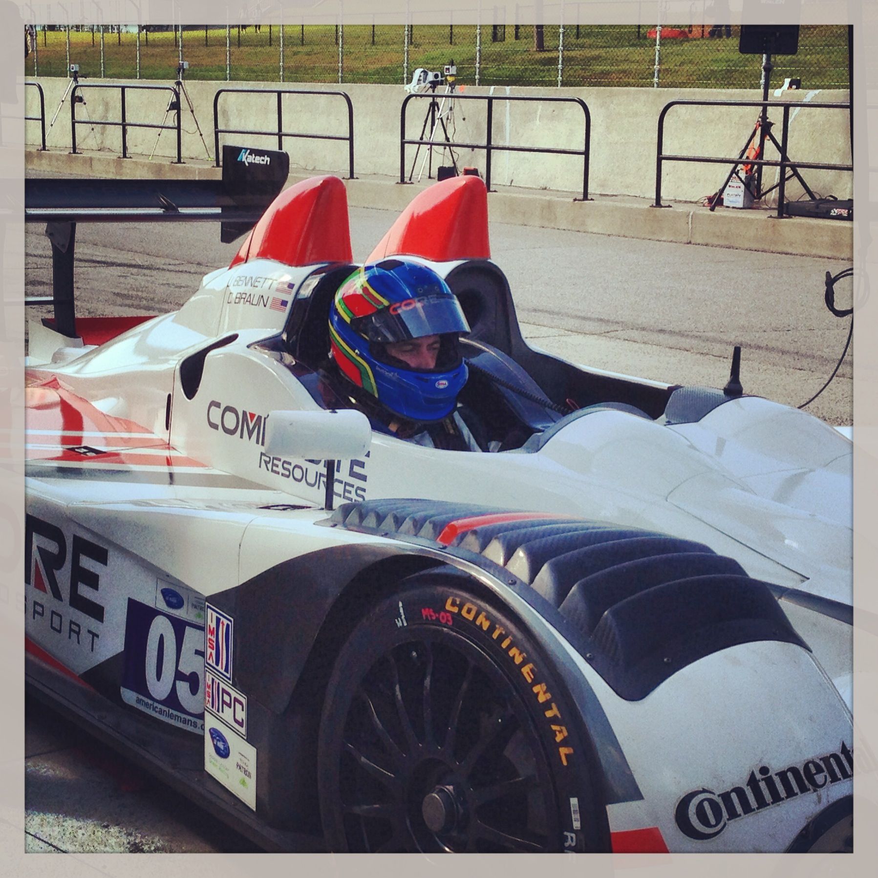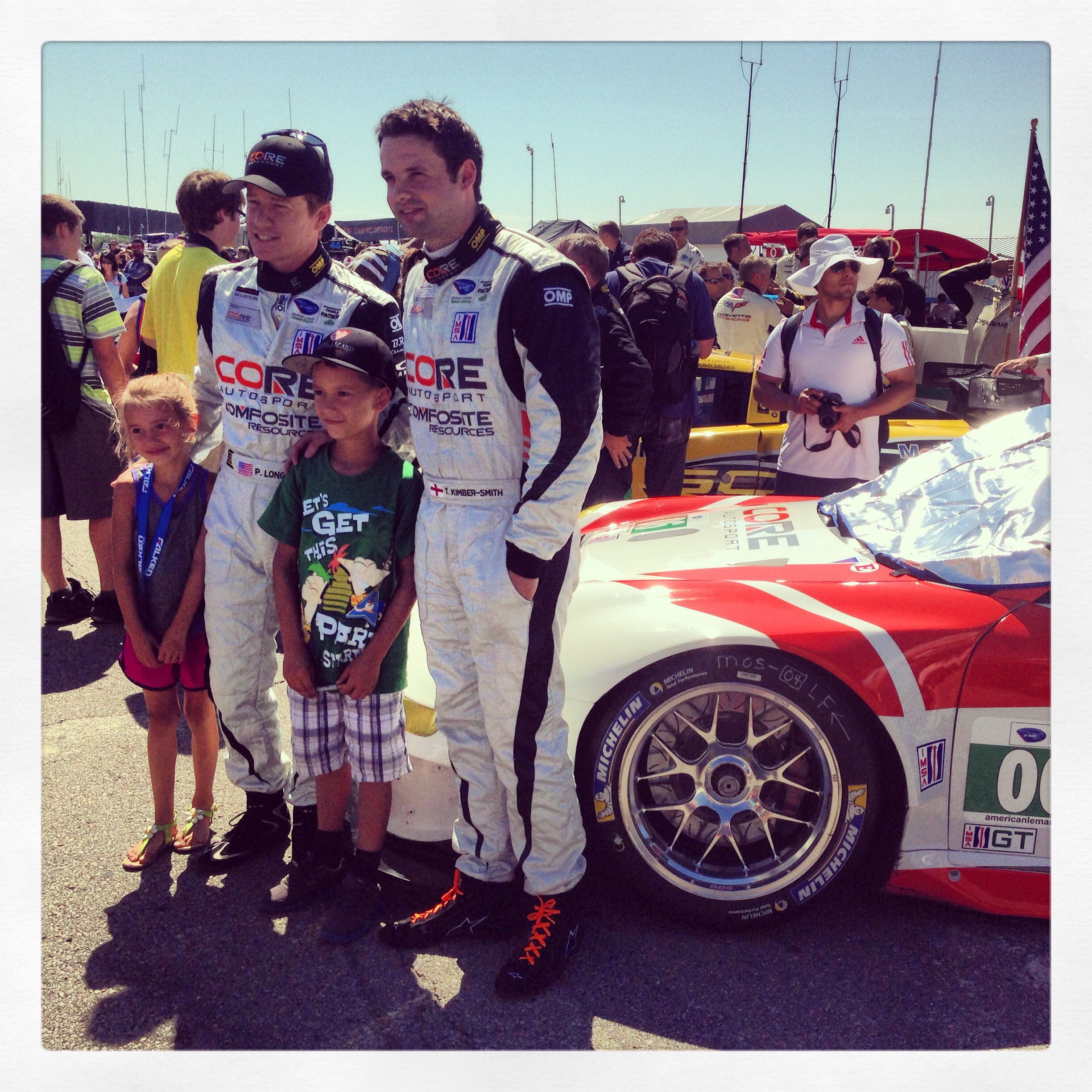 ALMS events are super fan friendly. We have an open grid before the race starts where fans can meet and get pictures with their favorite drivers on the front straight. Here’s Pat & Tom with some young fans.