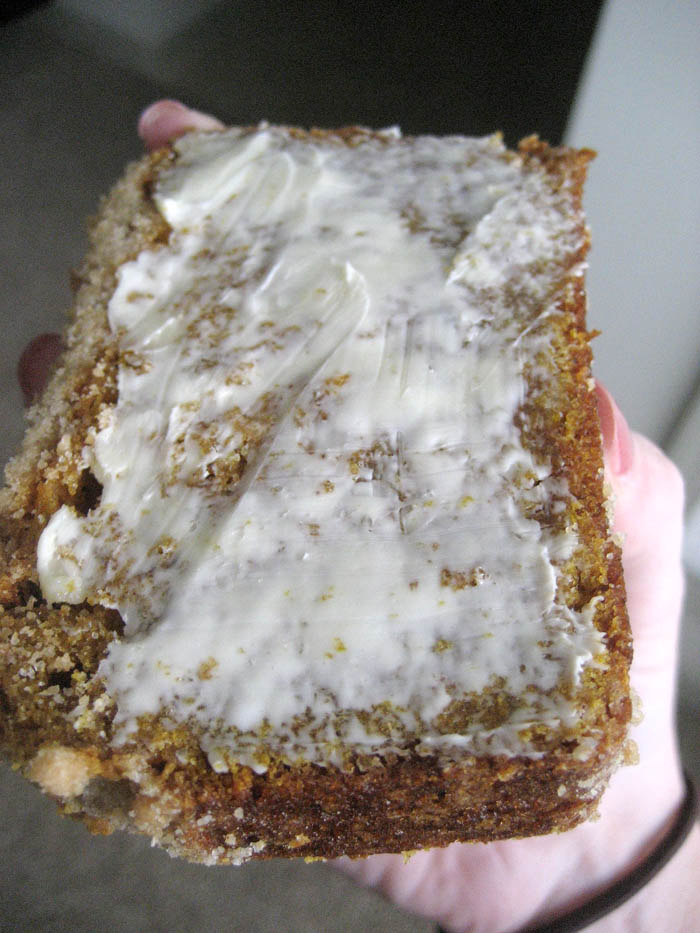Also if you’re like me, you’ll slather a slice in butter as soon as you can remove the loaf without suffering third degree burns. Go #TeamPumpkin !