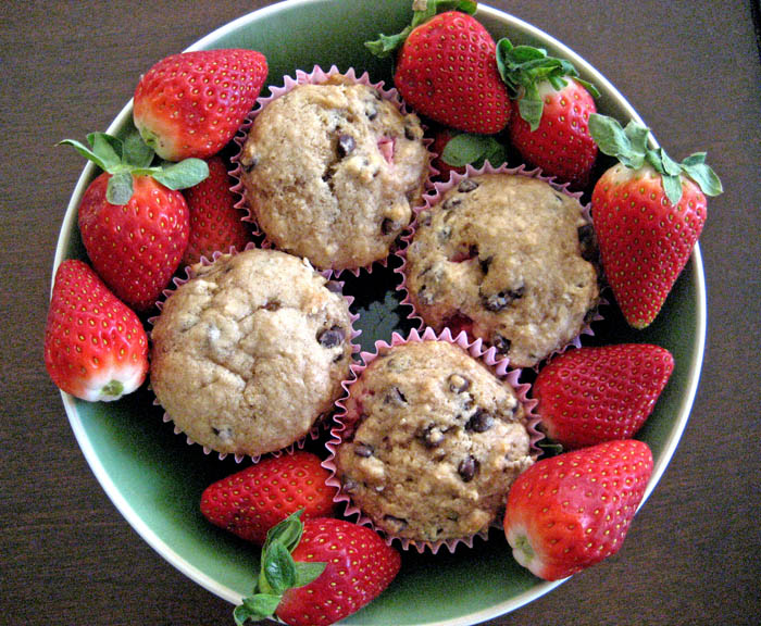 You know what’s going to cheer you up? Strawberry chocolate chip muffins. Oh heck yes. I know it’s winter and strawberries aren’t in season and that makes me the enemy of locavores everywhere, but I needed something to remind me that spring would be here eventually. And duh, it needs to have chocolate in it too.